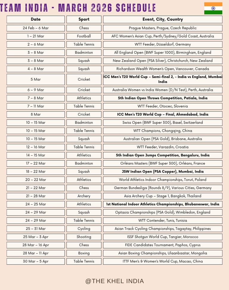 Team India March Schedule