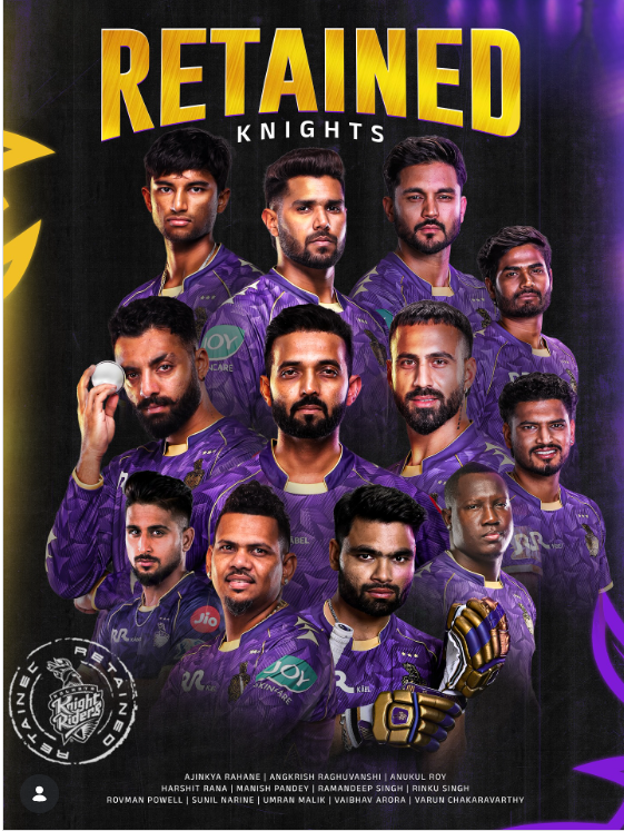 The Retained Core: Sunil Narine and Varun Chakaravarthy remain the heartbeat of the bowling, supported by the finishing duo of Rinku Singh and Ramandeep Singh.